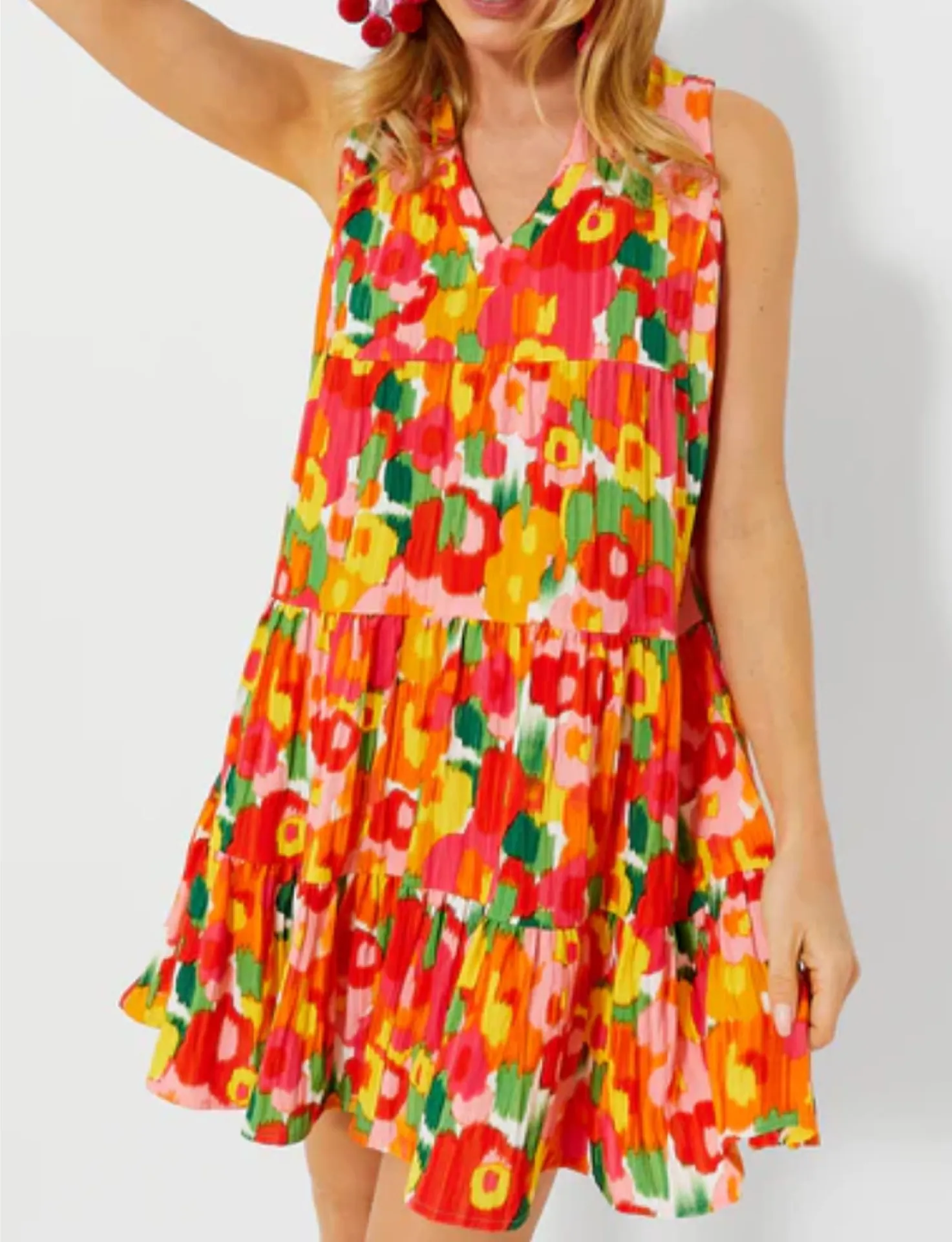 Tuckernuck POMANDER PLACE Magnolia Watercolor Sleeveless Kenzo Dress size medium. customer tavorite and all time best-seller, the Kenzo dress is warm weather ready in our sleeveless silhouette. Featuring our vibrant Magnolia Watercolor print, a V-neckline, and a loose empire waist, this flirty frock is the most flattering day dress. Pair with sandals and sunnies for a casual daytime look or dress this punchy mini up with espadrilles and statement earrings for dinner with friends. • V-neckline • Sleeveless • Empire waist • Tiered skirt • Mini length • Material: 95% Polyester, 5% Spandex Great condition. No holes or stains.