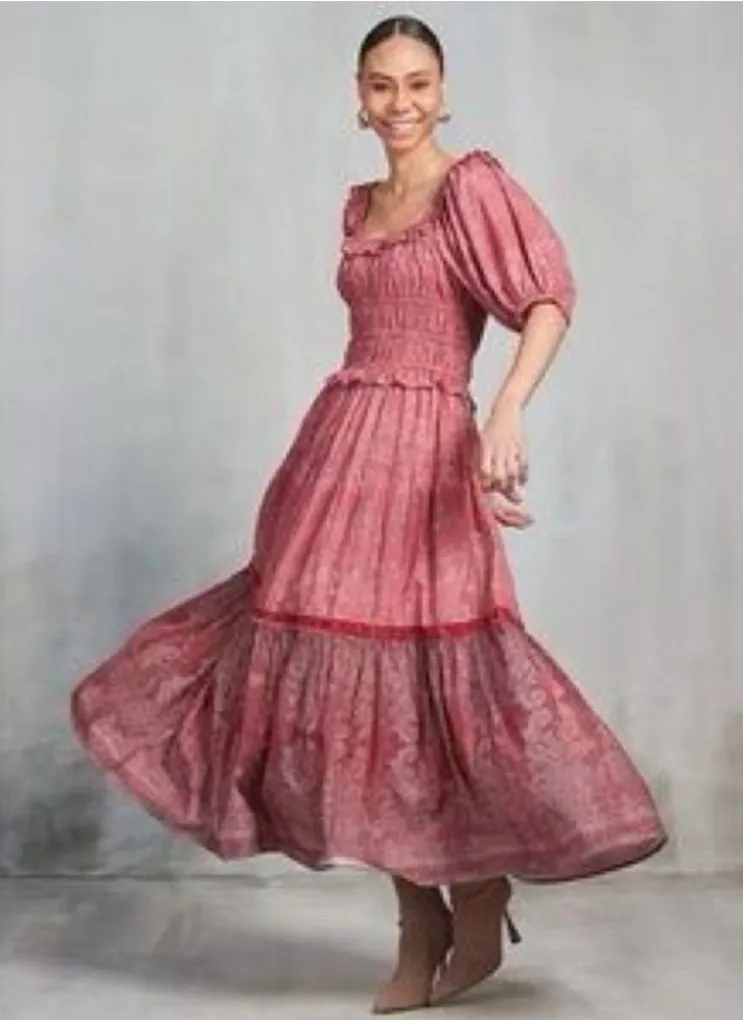 Ro's Garden Percey Puff Sleeve Maxi Dress Dress in Baltisan‎ Red - $121 New With Tags - From Leslie