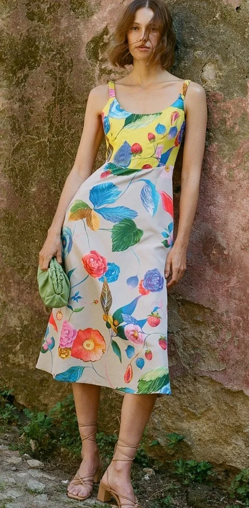 💐 New With Tags – Retail $328 Make a bold and beautiful statement with the Tuckernuck Vivid Jardin Dominique Dress, a stunning midi-length dress featuring vibrant florals and rich botanical print. The fitted bust, square neckline, and flattering A-line silhouette deliver effortless elegance, while the lively yellow bodice adds eye-catching contrast. Made from 100% polyester with a silky satin-like finish, this unlined dress drapes beautifully and feels light and breezy—perfect for weddings, garden parties, vacations, or brunch dates. The color palette bursts with tropical flowers, strawberries, and lush leaves that give designer resort vibes at a fraction of the price. 📌 Details: • Brand: Tuckernuck • Style: Vivid Jardin Dominique Dress • Size: Small (S) • Color: Multi / Yellow • Length: Midi • Material: 100% Polyester • Fit: True to size, slip-on style • Features: Bold floral print, fitted bust, square neckline, flattering silhouette • Condition: NWT (New with tags) • Retail Price: $328 ✨ Style tip: Add strappy heels and a clutch for events, or wear with flats for a romantic day look! Custom Disclaimer: 🛍️ All items are 100% authentic and stored in a smoke-free environment. Please review all photos and feel free to message me with questions! Bundle to save!