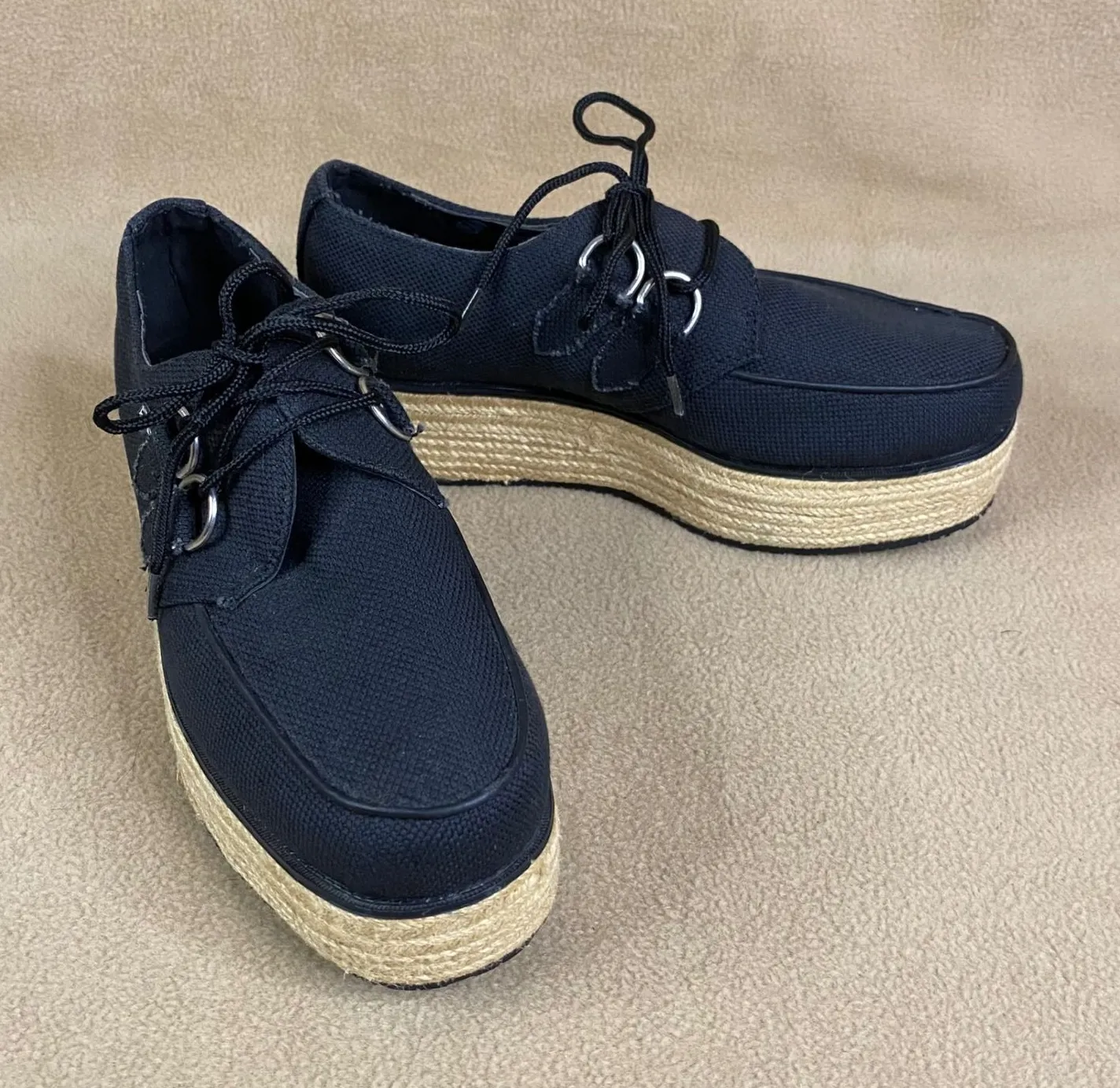 Condition: Excellent Used Condition Size: 7 Color: Black Style: Platform Department: Women Features: Comfort, Cushioned Occasion: Casual Insole Material: Fabric Lining Material: Fabric Outsole Material: Synthetic Closure: Lace Up Toe Shape: Closed Toe Pattern: Solid 384B