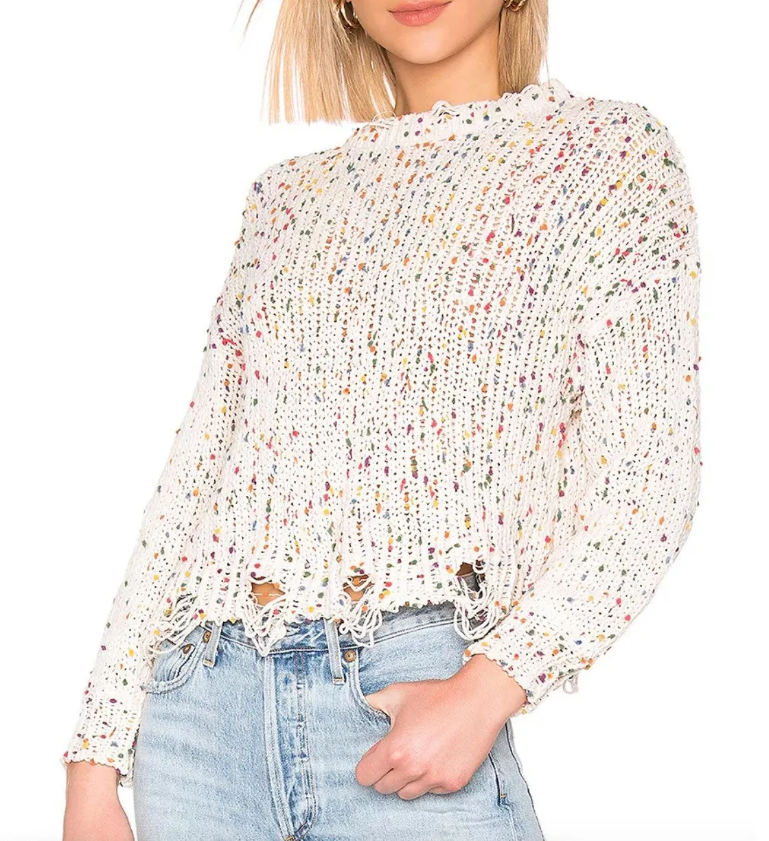 Tularosa Sweater Womens X Small Cream Confetti Distressed Chenille Knit Pom Pom Size X Small Preowne... Show more