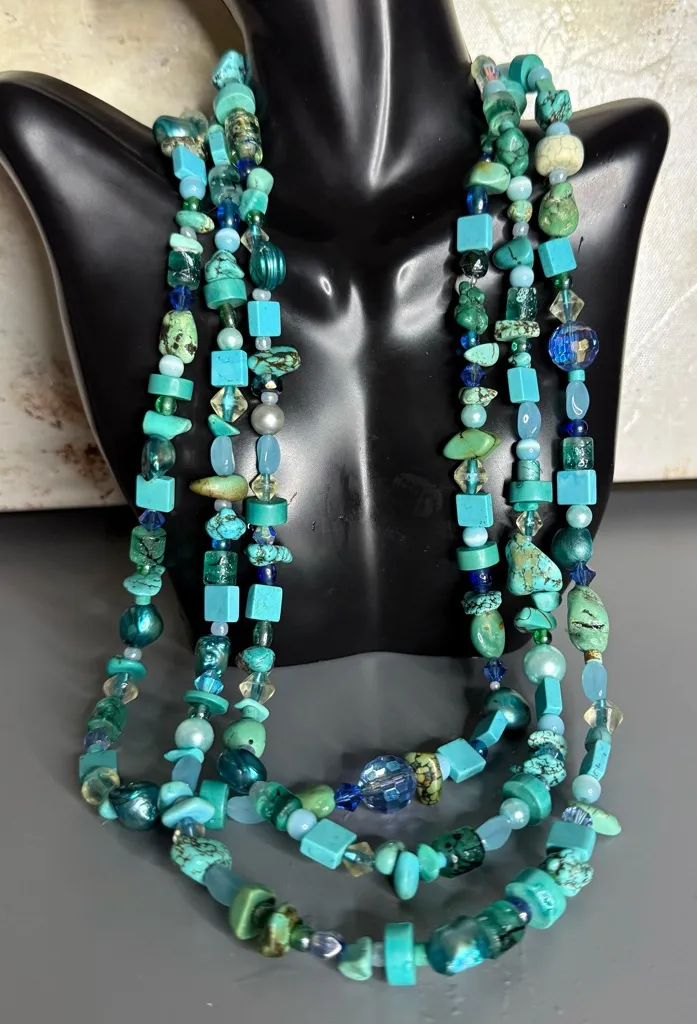 Turquoise and Faux Turquoise Necklace with Genuine Cultured Pearl Accents 🔥 Blue - $39 - From Patti
