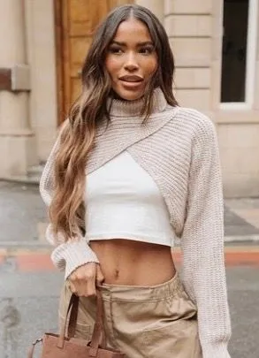 Turtleneck Crop Knit Sweater Beige | PrettyLittleThing Cropped Cream Sweater Cozy, perfect for laye... Show more