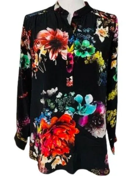 Amanda Uprichard Stunning Floral Button Front Tunic. Super Vibrant Stunning Red, Orange, Pink, Purpl... Show more