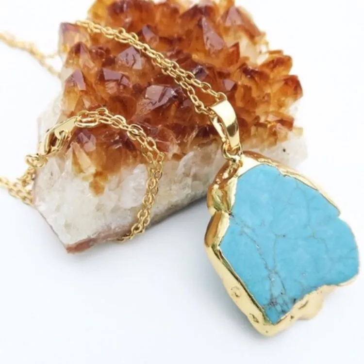 Description: Natural Turquoise pendant with soft finish for scratch resistance. Featuring a 24k gold... Show more
