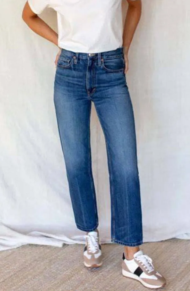 Excellent condition Essential+ classic straight fit is inspired by favorite vintage jean updated as a modern silhouette with our signature back pocket. High rise with a straight leg that finishes at the ankle. part of our Twin Doves denim collection - made in an Eco advanced facility in Los Angeles - Cotton Denim - Zip fly with button closure - Belt loops - 5 pocket denim style - Machine wash - Made in LA
