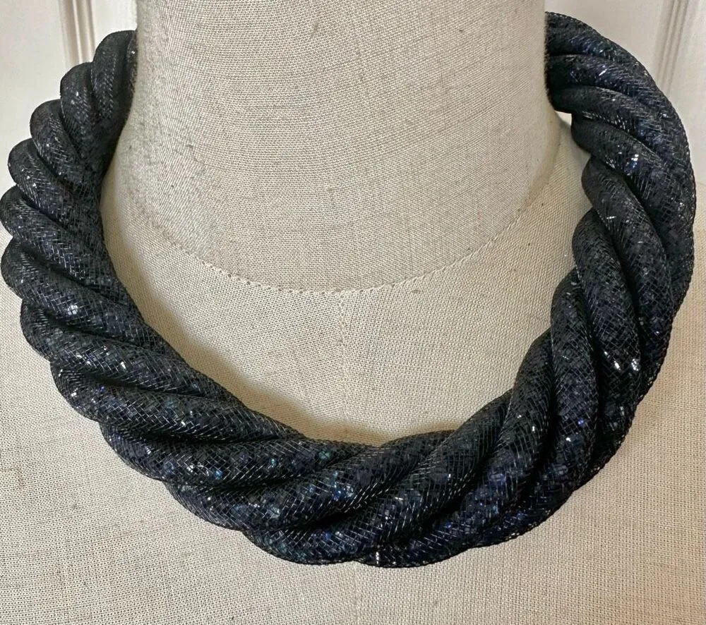 Twisted blue mesh and crystal beaded statement necklace Multi strand Sparkly Good condition Magnetic clasp (has some wear) Very open to reasonable offers - I always try to accept offers or counter or work with you on an amount that works for both of us :) Check out my other listings - lots of jewelry! Bundle to save - the more you bundle, the bigger the discount 5 star seller Same or next day shipping I include a gift on 3+ bundles Please see photos. They are part of the description Happy to answer any questions- I am usually on line other than when I’m sleeping lol New listings every day Thanks for stopping by ! G