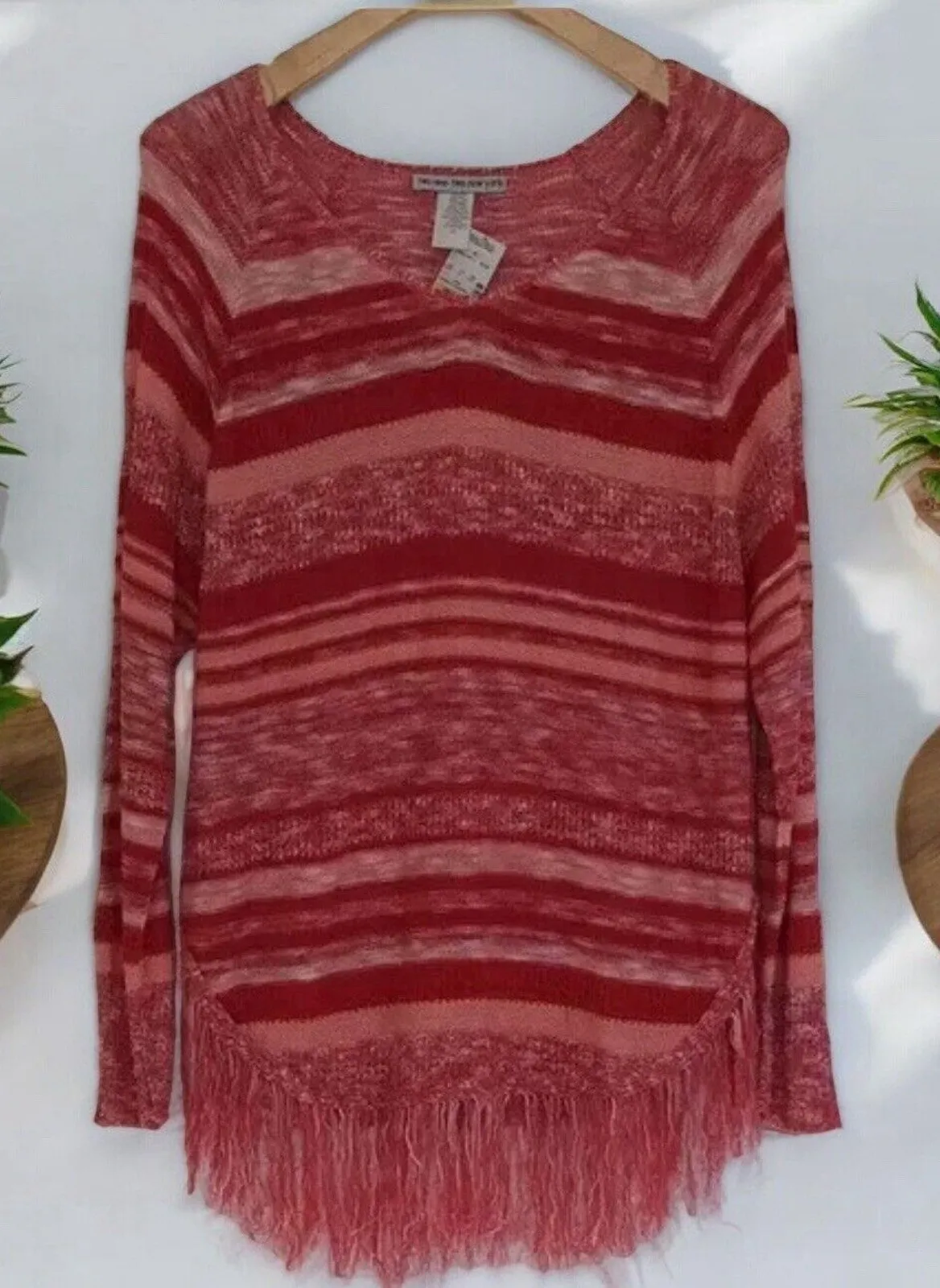 Two-one-Two Red striped long sleeve sweater with fringe hem‎ Women’s Size XL - $27 New With Tags - From Diana