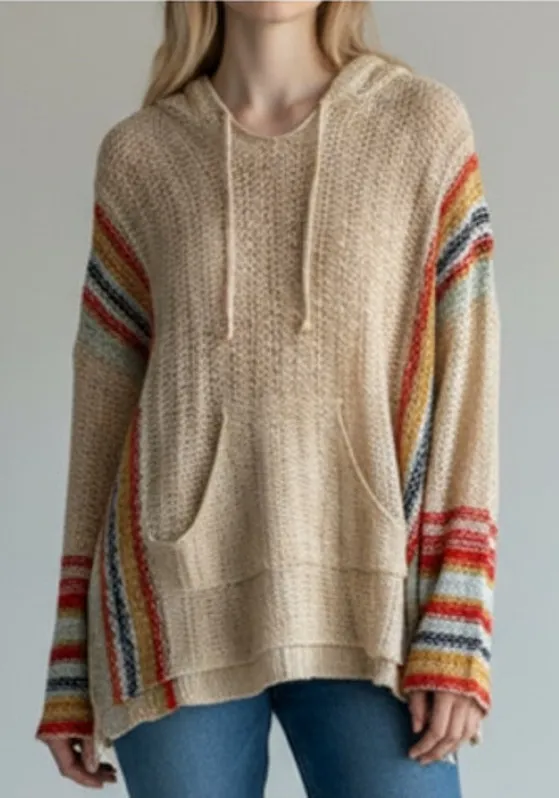 Excellent Pre-Owned Condition Easel Los Angeles Hooded Sweater Size: Medium Color: Ivory with Multi-... Show more
