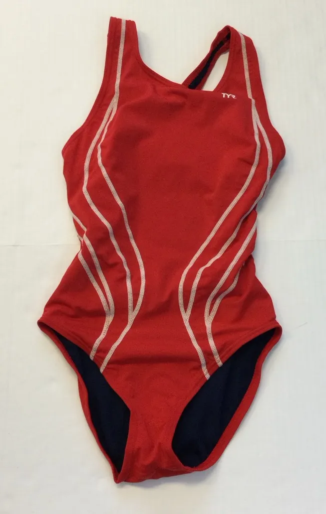 There is a name written on the inside tag. A gal that was a lifeguard as well as a competition swimmer owned these suits. Two are just alike except for the sizes one is a 32 and one is a 34. I will be listing several more TYR swimsuits perfect for competition or Lifeguard. PRODUCT DESCRIPTION TYR SWIMSUIT FOR WOMEN Red & Black Fabric: 80 % Elastane - 20 % Polyamide Handwashing preferred FABRIC DESCRIPTION LYCRA® Xtra Life LYCRA® The Xtra Life LYCRA® fiber holds you snugly in just the right places as you sashayed across the sand. It provides up to 10 times more resistance to chlorine than ordinary elastane, thus keeping both your bikini and you shapelier.