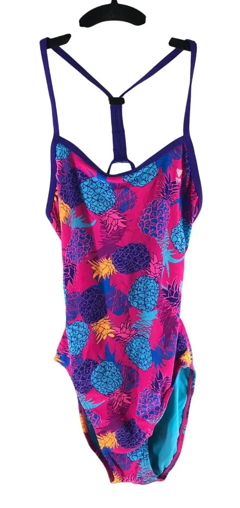 TYR Womens One Piece Swimsuit Panama Valleyfit Open Back Pink Pineapples 34 US M Size M - $32 - From Jen