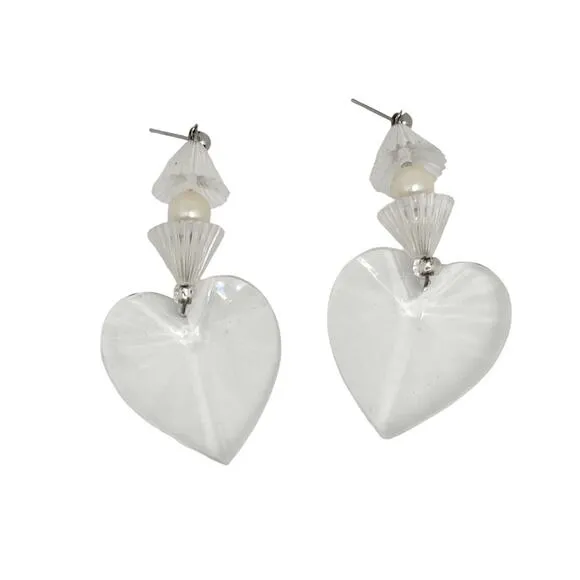 Vintage 1990s Clear Heart Beaded Dangle Drop Earrings - $14 - From Amanda