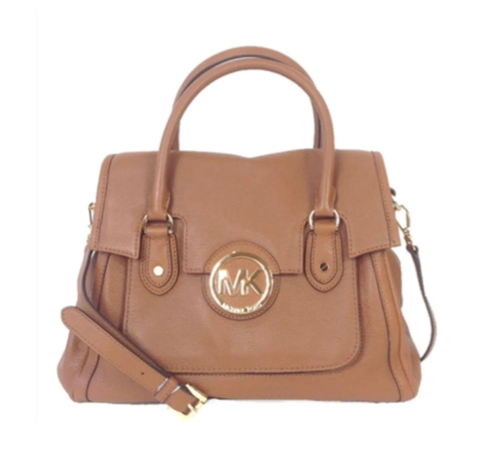 Michael Kors Margo tan pebbled leather large convertible satchel crossbody, features flap closure wi... Show more