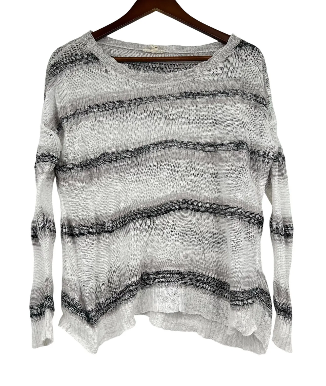 long sleeve crew neck white / gray / black striped light weight linen & cotton preowned, hole by col... Show more