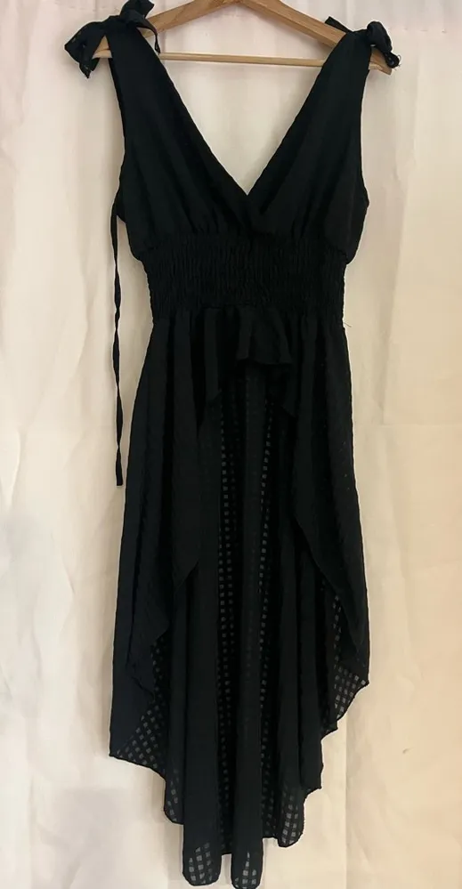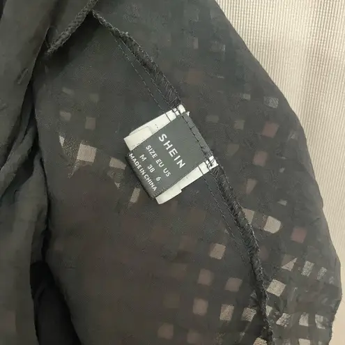 This elegant black blouse from SHEIN features a smocked design with a flattering v-neckline, perfect... Show more