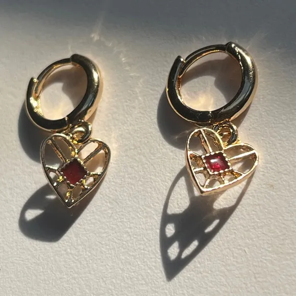 “Adorable Open Heart Gold Huggie Earrings with Sparkling Red Rhinestones! brand new with tags!" T... Show more