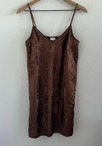 A New Day Metallic Slip Style Dress Bronze and Black Preowned. Size: XS - Extra Small Underarm-to... Show more