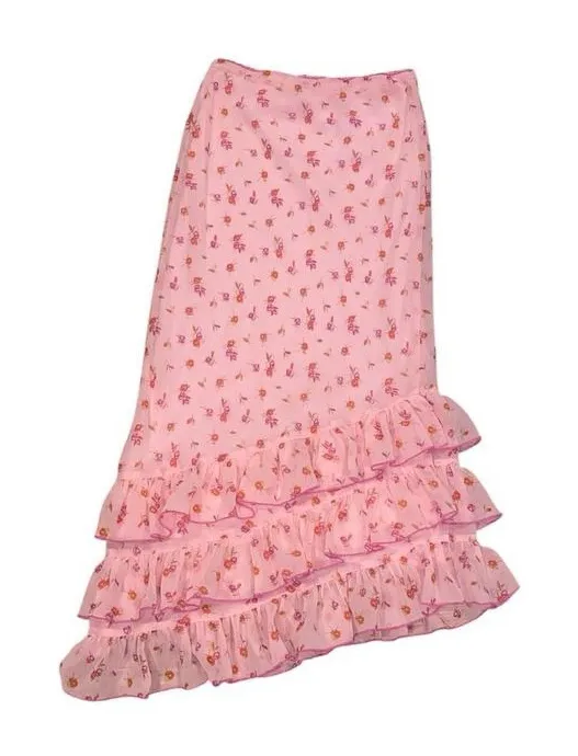 Urban Outfitters Kimchi Blue pink floral Lenora chiffon ruffle asymmetrical midi skirt size xs waist... Show more