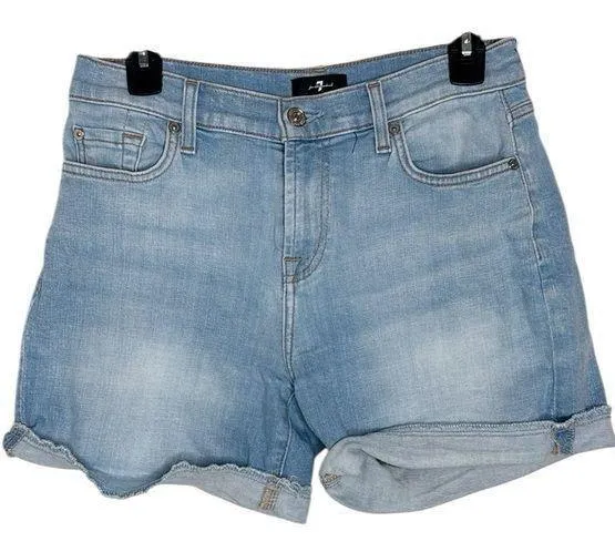 7 For All Mankind Women's light wash Denim Mid Roll Shorts Good used condition, Size 26 Very mild w... Show more