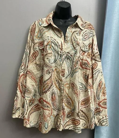 Croft & Barrow women 3X Tan and red paisley pattern blouse #paisleypatte… - $17 - From Maria