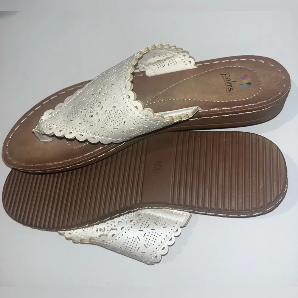 *Minor dot stain inside. The PALMS Women’s Perforated Flex Thong Sandals in a stylish white-on-brow... Show more
