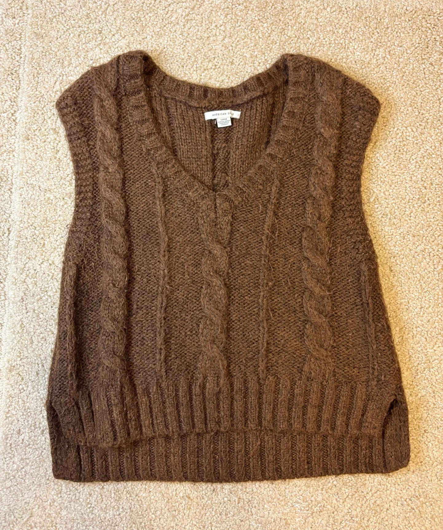 American Eagle Brown V Neck Sweater Vest Knitted Size small I paired this with a white long sleeve... Show more