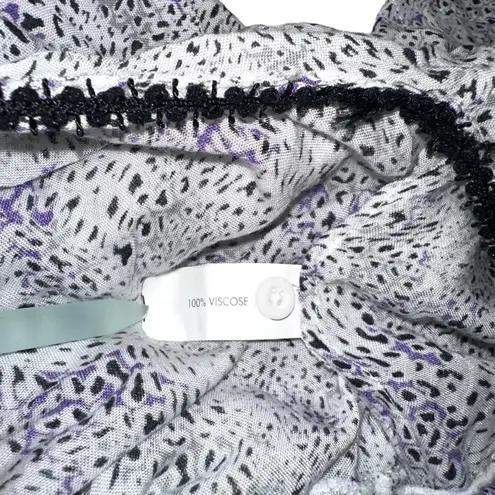 Poupette St Barth Clara Sleeveless Printed Button Front Maxi Dress Features Pom Pom collared Button-loop closure Sleeveless Unlined Tassel neck tie V-neck Loose fit Size: Medium Color: White/Purple/Black Material: 100% Viscose Chest: 18.5 in Length: 54 in Measurements are proximate laying down flat NOTE: Last picture for look/fit reference