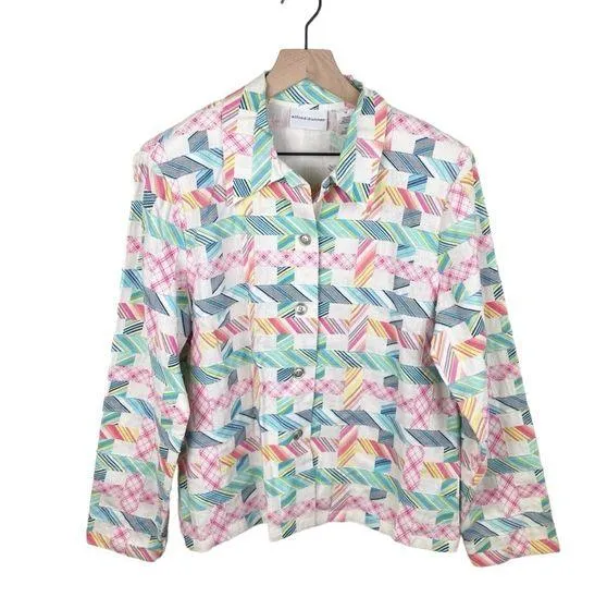 Alfred Dunner Linen Mixed Print Patchwork Jacket White with multicolor mixed plaid print quilt desi... Show more