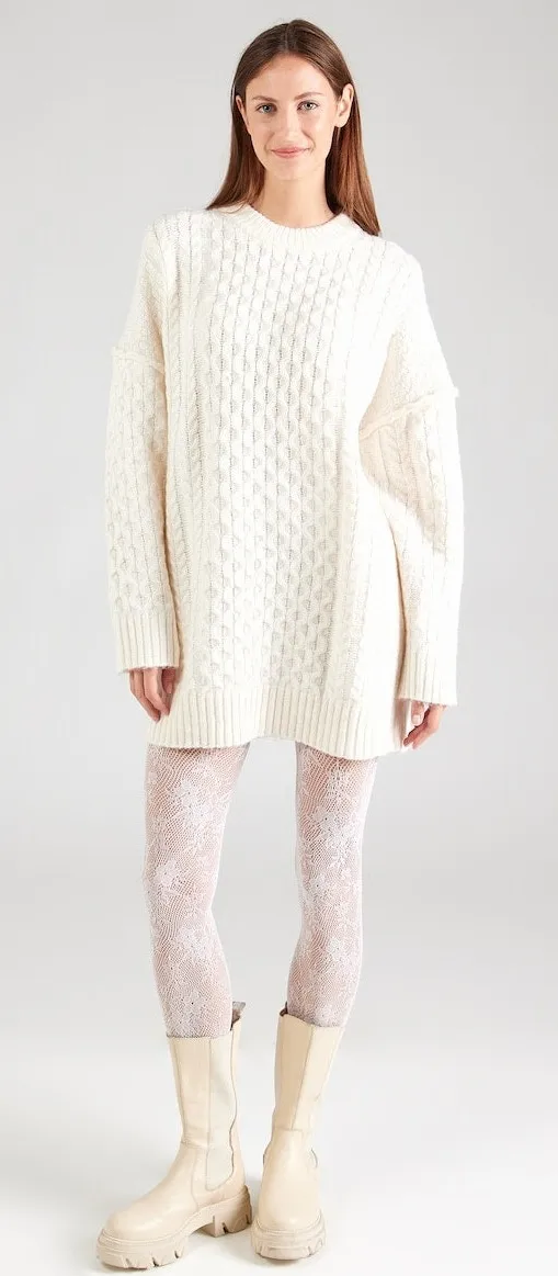 Topshop Light Beige Cream Cable Knit Crewneck Knitted Dress Tunic Sweater. Ribbed Crewneck and Hem,... Show more