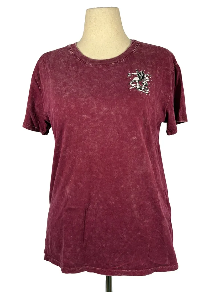 Empyre Graphic Tee – Red Acid Wash Shirt Trippy and darkly whimsical—this red acid wash Empyre tee features a framed back graphic of a butterfly-winged skeleton fairy surrounded by mushrooms. Small matching graphic on the front. Soft cotton, relaxed fit, and a killer piece for goth, alt, or festival styling. Brand: Empyre Size: Large Chest/Pit to Pit: 20” Shoulders: 19.5 Sleeve Length, shoulder to cuff: 6.25” Sleeve Length, Armpit to cuff: 3” Cuffs/Sleeve Opening: 6” Bottom Hem/Waist: 21.5” Length, Shoulder to Hem: 25.5” Color: red acid wash Condition: Good used condition; no visible marks or flaws Style(s): tie dye, skateboaring, sk8er boi, grunge fairycore, goth skater, mushroom graphic, alternative fashion, skeleton print, trippy tee, soft grunge, witchy streetwear, Y2K alt, e-girl aesthetic All measurements are approximate and taken with garment laying flat. Colors may vary slightly depending on lighting and monitor settings. #TrippyTee #MushroomGraphic #Y2KAlt #GrungeStyle