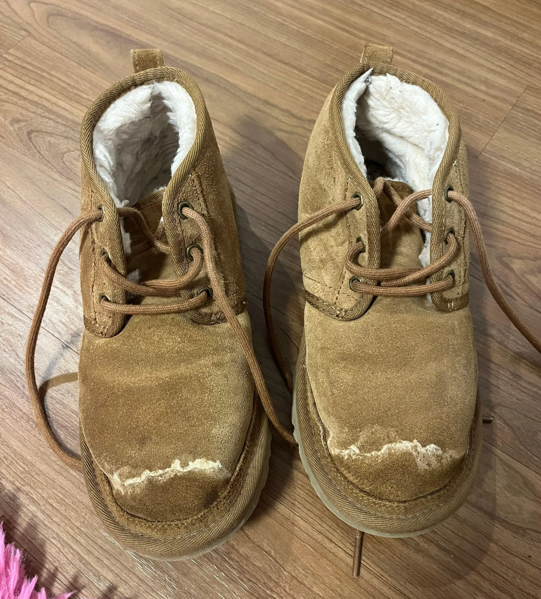 ugg minis tie up. stains on front that you might be able to get out but great condition otherwise