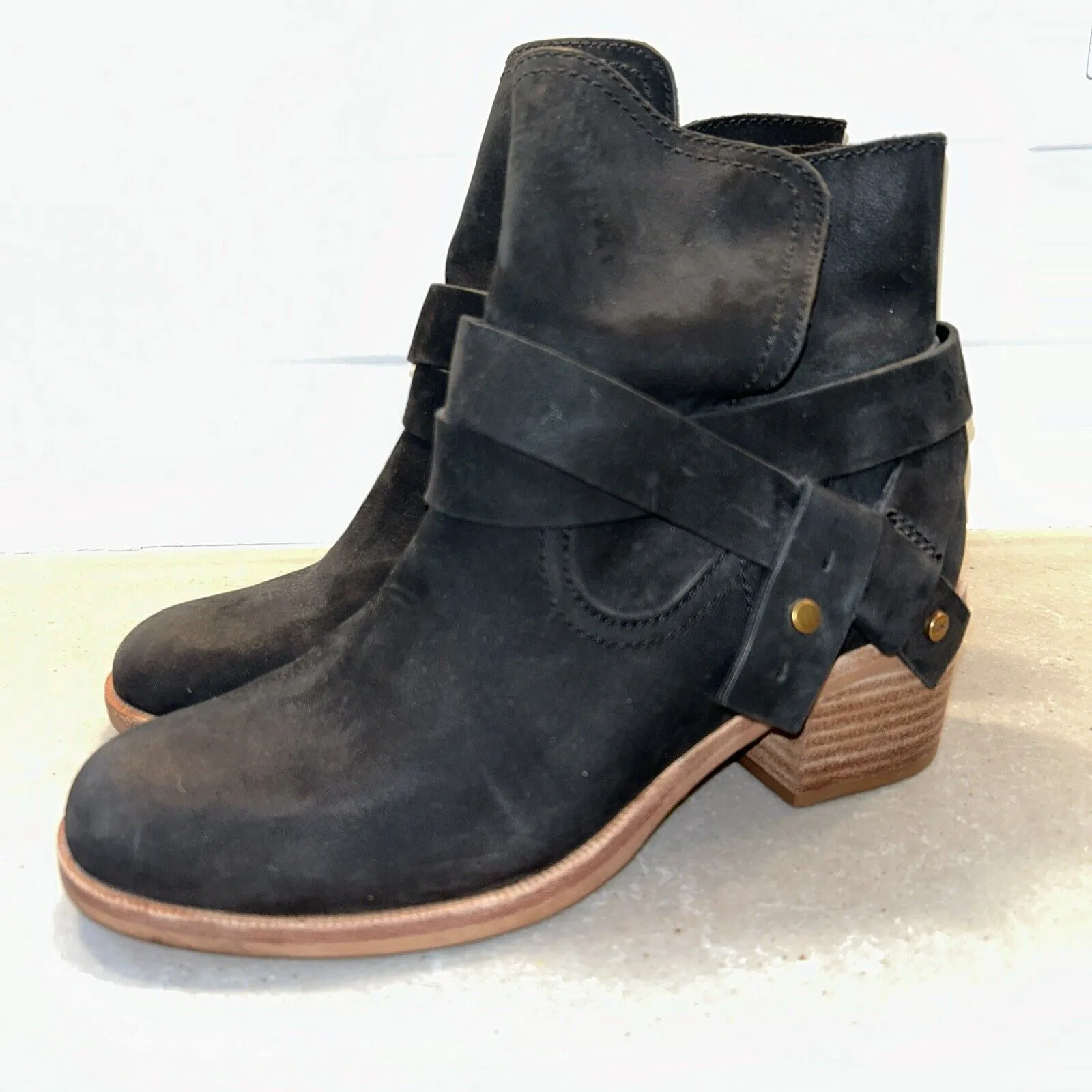 UGG Boots Womens size 5 Elora Ankle Booties Black Suede Block Heels Pull On Excellent Preowned... Show more