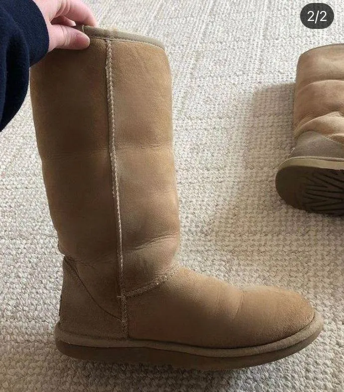 Adorable tall UGG boots in the light brown. Been worn but still in great condition. Love just don’t... Show more