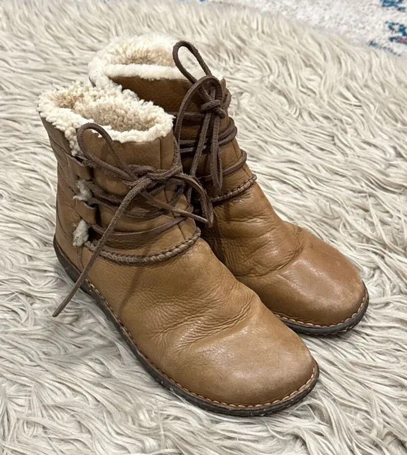 UGG Caspia 1932 Tan Leather Lace Up Ankle Sheepskin Warm Boots Womens Sz 8. Crafted from supple le... Show more