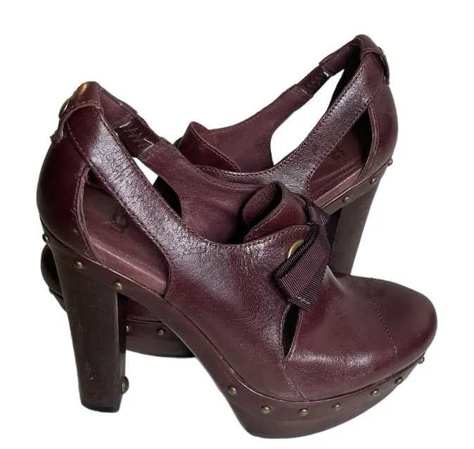 Leather Shoe clog hybrid. Narrow block heel is approx 4.75”, front platform 1.25” , both including l... Show more