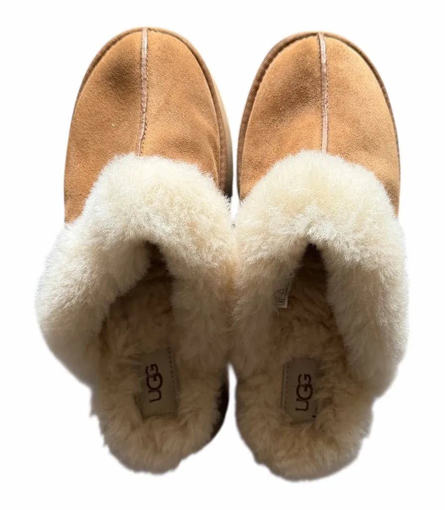 UGG Women’s Disquette Slippers Chestnut Suede Condition: Good Preowned Condition READ: Visible wear... Show more