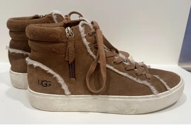 UGG Olli Heritage Sneaker Trainers Suede Sheepskin Fur Lined Boots Size 7 Tan - $71 - From Eco
