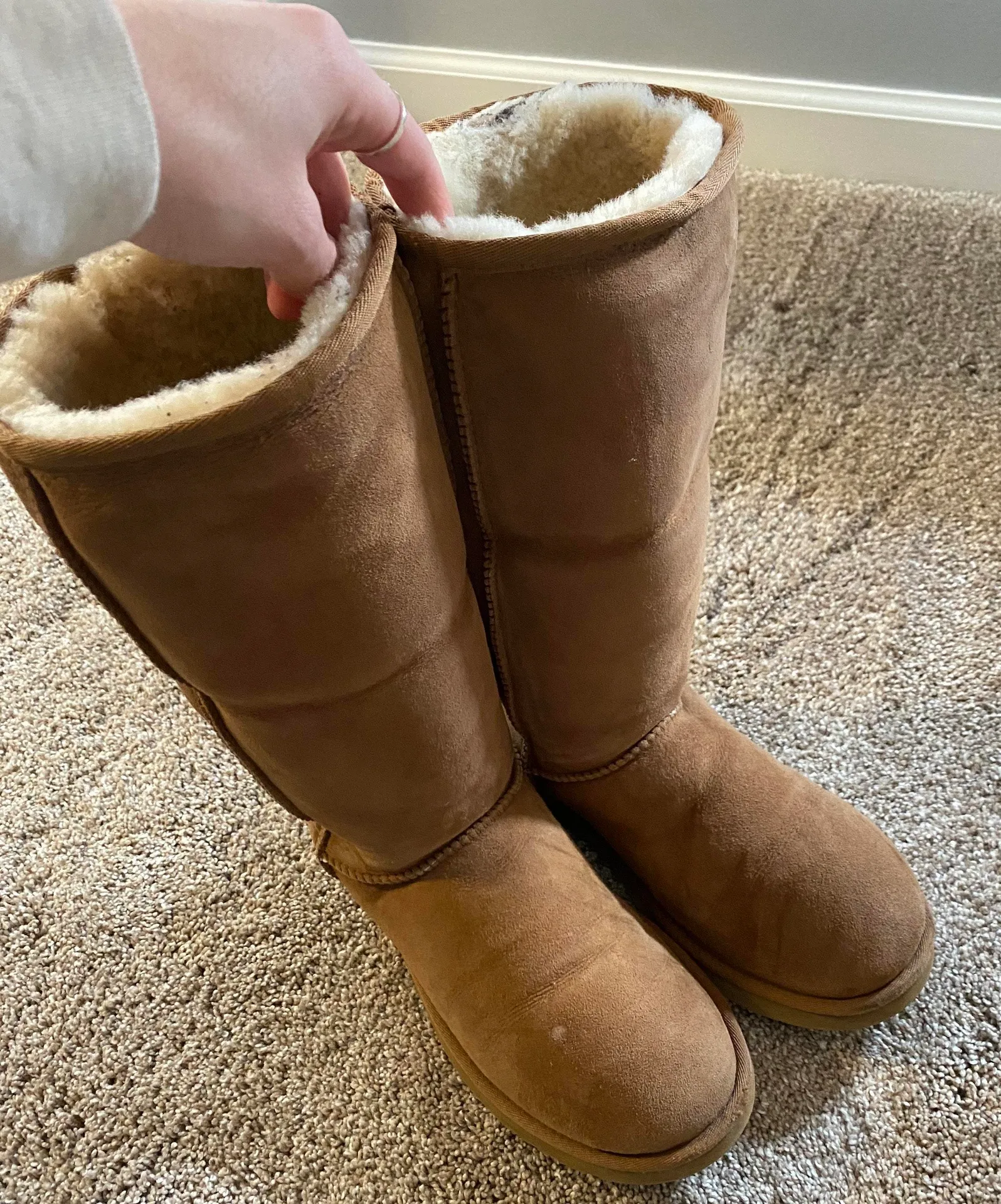 Ugg boot, tall, chestnut, have a couple marks as shown in picture, otherwise great condition, can be... Show more