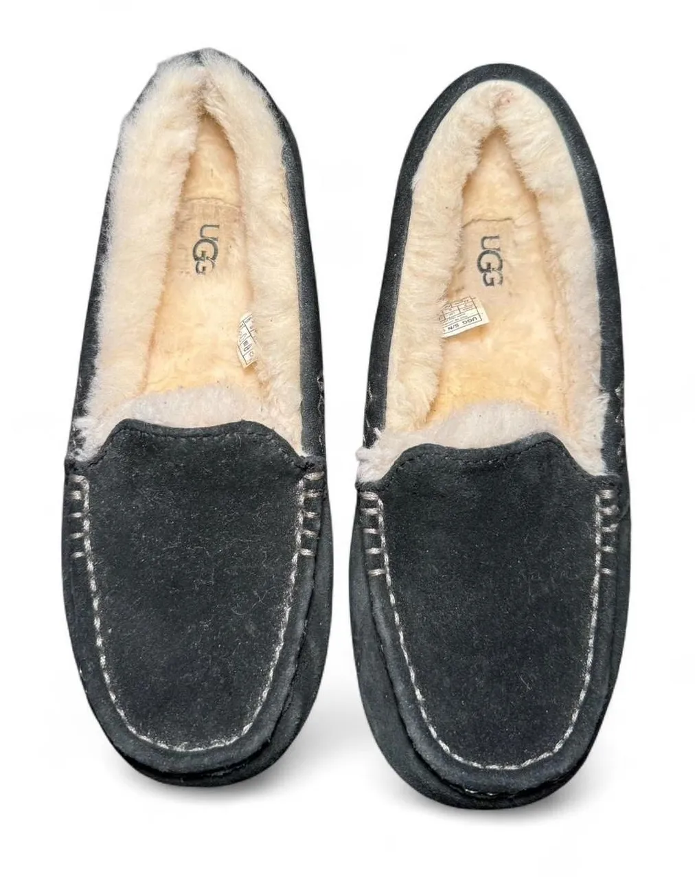 Stay warm and cozy with these authentic UGG women’s suede shearling slippers, size 7. These moccasin... Show more
