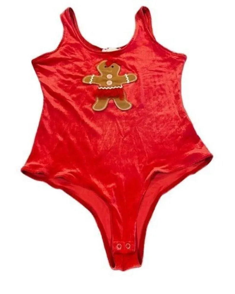 Trendy cozy Christmas ugly sweater red velvet bodysuit size small Get into the Christmas spirit wi... Show more
