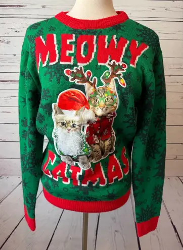 Ugly Christmas sweater Party size Small Dec 25th Knit Pullover colorful Cats Crazy Cat Lady Meowy Ca... Show more