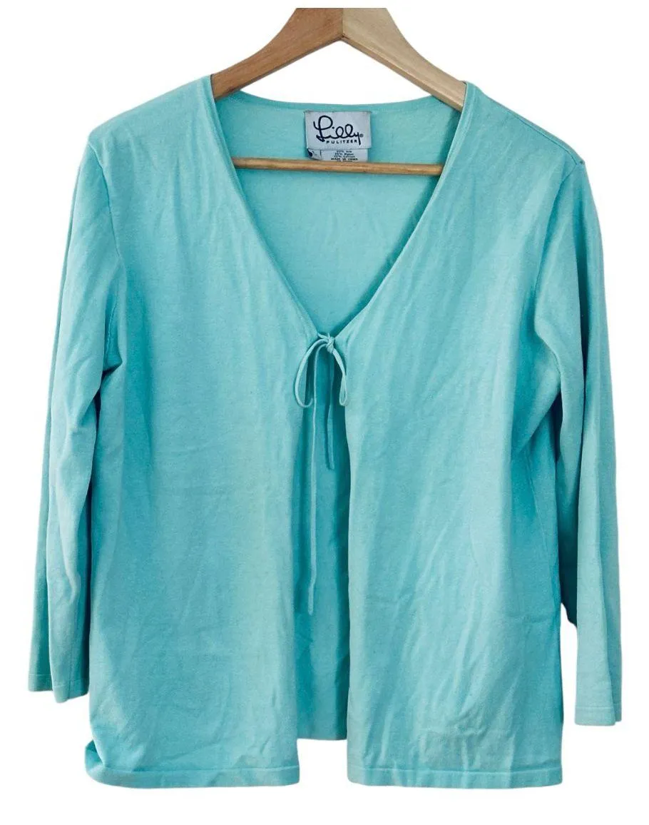 LILLY PULITZER Amalie Cardigan Size L Open Front turquoises tie front