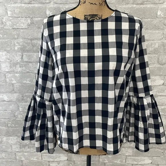 Anthropologie Sunday in Brooklyn Check Poplin Top Bell sleeve Keyhole back closure Buffalo plaid pri... Show more
