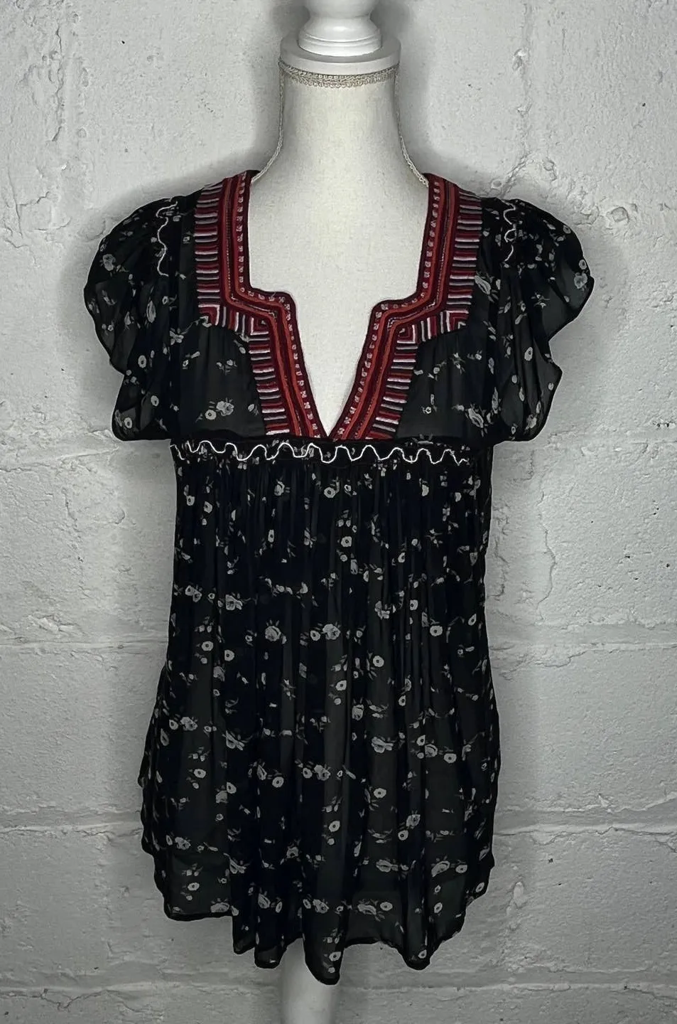 Ulla Johnson women’s Anosha blouse in size 4, crafted from luxurious silk in a rich navy blue color. Features intricate embroidered floral detailing that adds a romantic, elevated touch to this designer top. Lightweight and breathable with a flattering silhouette, making it perfect for workwear, special occasions, or refined everyday styling. A timeless piece that pairs beautifully with trousers, skirts, or denim. Preowned and in excellent condition. Please review photos and measurements for best fit. Ulla Johnson blouse, Anosha blouse, women’s silk blouse, embroidered floral top, navy blue silk blouse, size 4 designer top, luxury women’s blouse, boho chic blouse, elevated everyday top, Ulla Johnson clothing