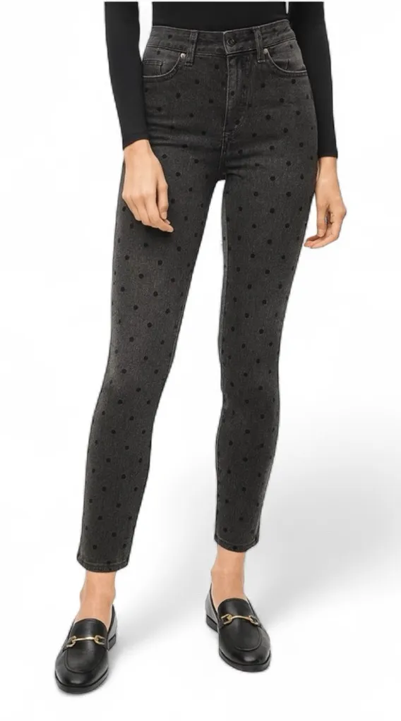 These Ulla Johnson Prince skinny jeans offer a refined twist on denim with high-rise comfort, charcoal gray fade, and embroidered black polka dots for subtle charm. Brand: Ulla Johnson Style: Prince Polka Dot Skinny Jeans Color: Charcoal Gray / Faded Black with Black Polka Dots Size: Women’s 2 Material: 98% Cotton, 2% Polyurethane Features: • High-rise waist • Cropped skinny leg • Embroidered black polka dots • Faded finish • Classic 5-pocket design • Zip fly with button closure Measurements (laid flat): • Waist: 13.5 in • Rise: 10 in • Inseam: 27 in Condition: Pre-owned; in great condition. Light fading throughout. No rips, stains, or holes. Please see all photos for condition details. Style Tags: polka dot denim, high waist skinny, charcoal jeans, embroidered detail, cropped fit