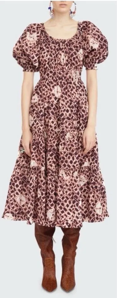 Ulla‎ Johnson Purple Printed Shibori Poplin Colette Midi Puff Sleeve Dress Size 2 - $250 - From Kate