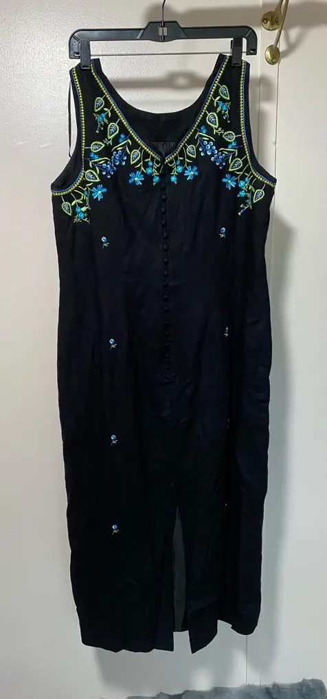 Ultra Dress NY Embroidered Black Dress 55%Linen 45%Rayon/Viscosa Size 14 - $45 - From Jaqueline