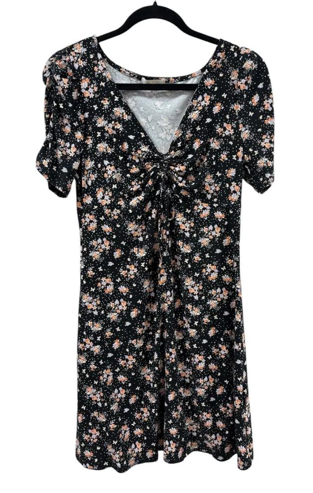 Ultra Flirt Black Floral Dress with Orange and White Details Size L - $25 - From Veronica