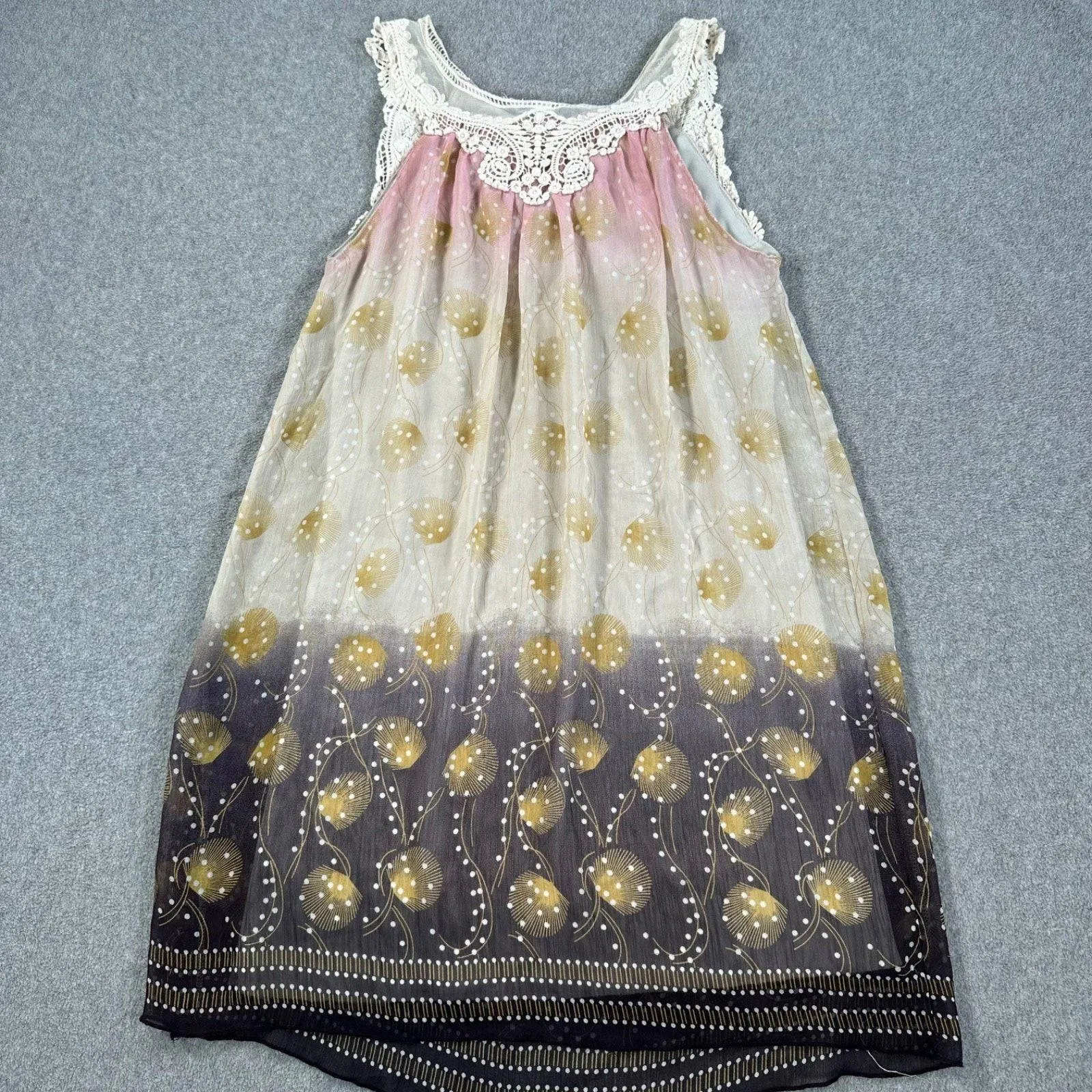 Size: X-Small Condition: Good Pre-Owned Condition, Light Wear, No Rips,Stains, or Tears.Please see all photos for most accurate representation of condition Color: Pink, Purple, Gold Closure: Pullover Pockets: No Material: 100% Polyester Sleeve Length: Sleeveless