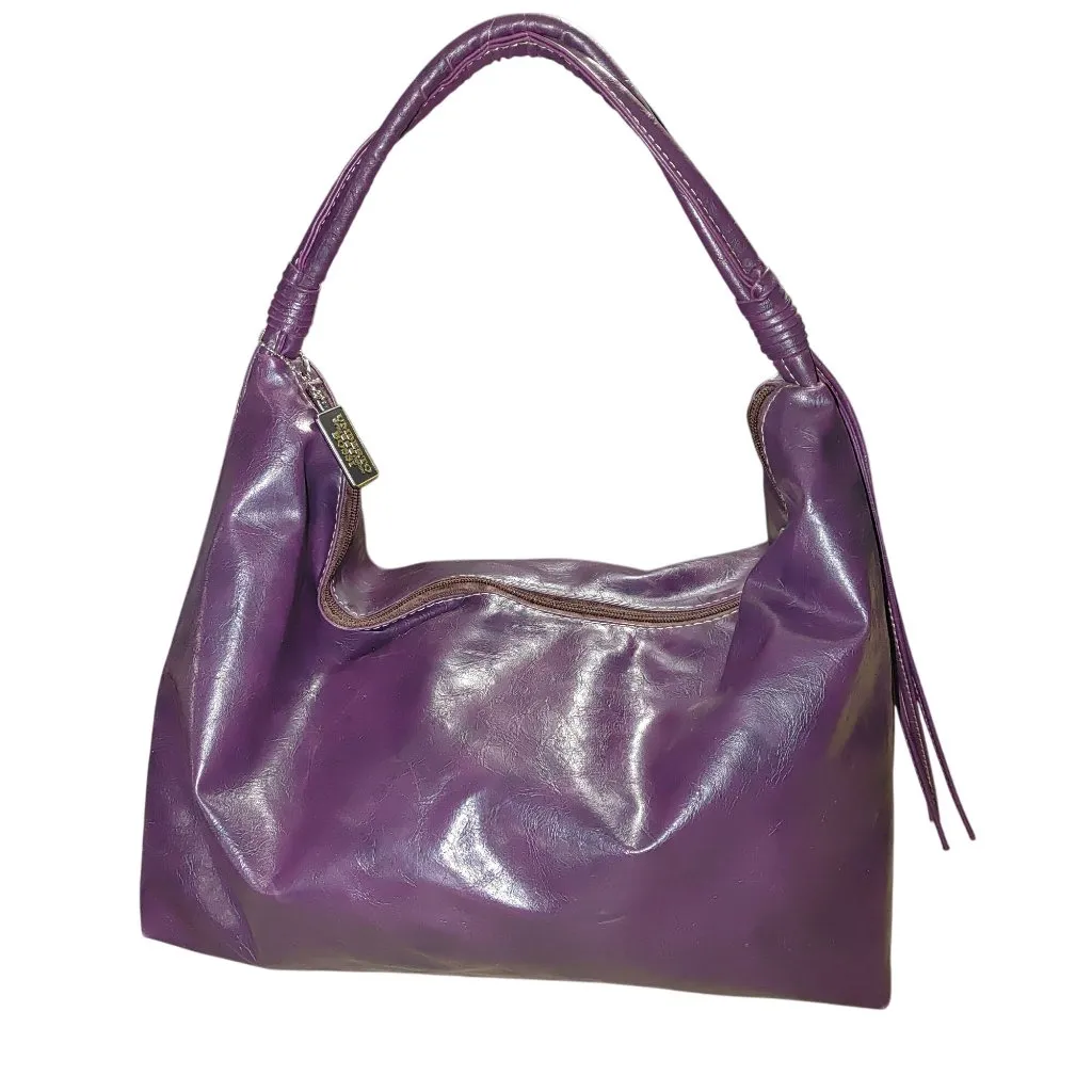 This vintage-inspired Umberto Bossi hobo bag in purple faux leather blends practicality with flair. Its classic zipper closure and tassel details provide a timeless appeal. • Spacious interior for daily essentials • Secure zipper closure • Comfortable shoulder strap • Durable faux leather material • Elegant tassel accents Interior lining shows minor discoloration. Approximate dimensions: Width = 13 inches, Height = 8 inches, Depth = 5 inches. Buyer Information All items are professionally cleaned and sanitized with an ozone treatment prior to shipping. Please note that this process may leave a light, temporary scent. The majority of my listings are pre-owned. Buyers are encouraged to request additional details or clarification before completing a purchase. I respond promptly to all inquiries. Reasonable offers are welcome and will be considered. Jewelry Testing Disclaimer: Gemstones are tested using the Presidium Duo Tester II. While this method confirms gemstone type, it cannot differentiate between natural and lab-created stones.